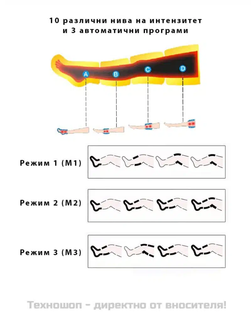 Лимфопреса за крака - 3 режима на работа