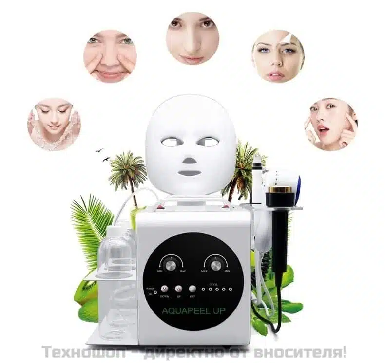 5в1 комбиниран козметичен апарат, съчетаващ в себе основни функции за третиране на лицето. Апаратът е със стилен дизайн и компактни размери.