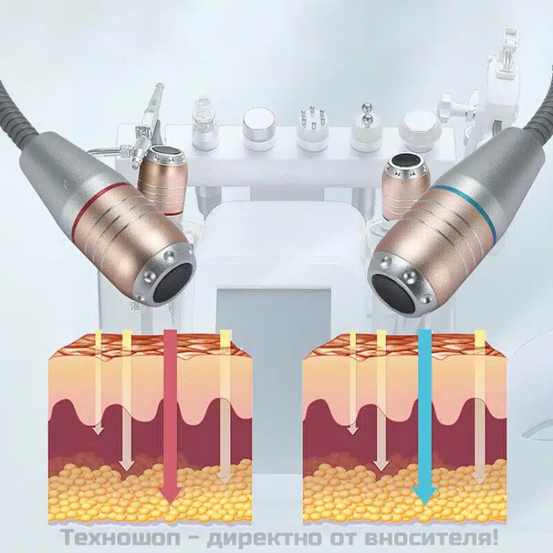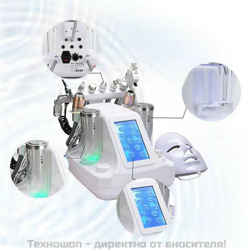 Козметичен апарат за професионална употреба, който съчетава 11 различни функции спомагащи за почистване, пилинг, подмладяване, премахване на акне, пигментация и белези.