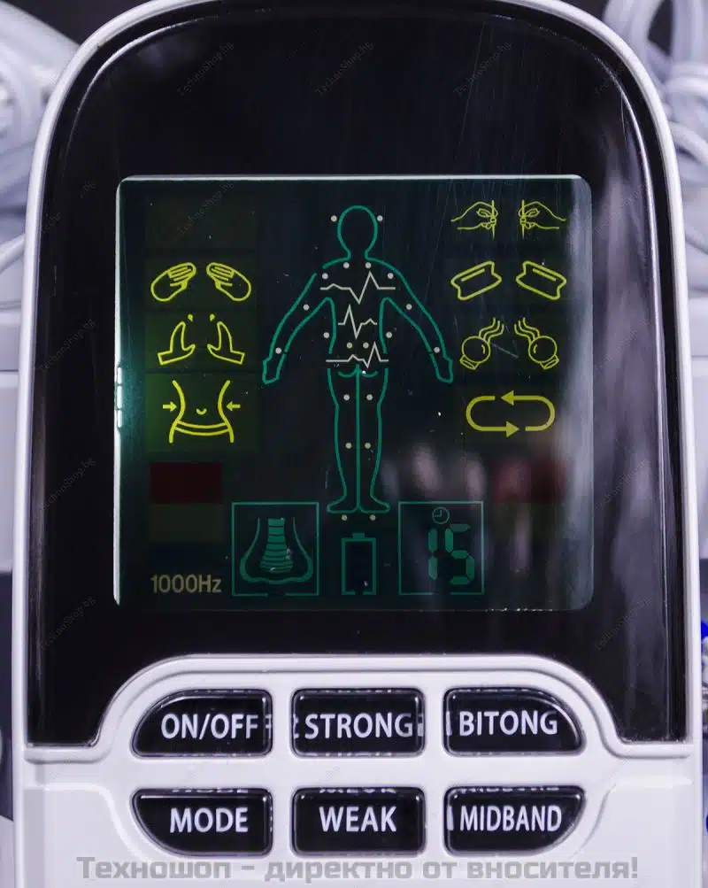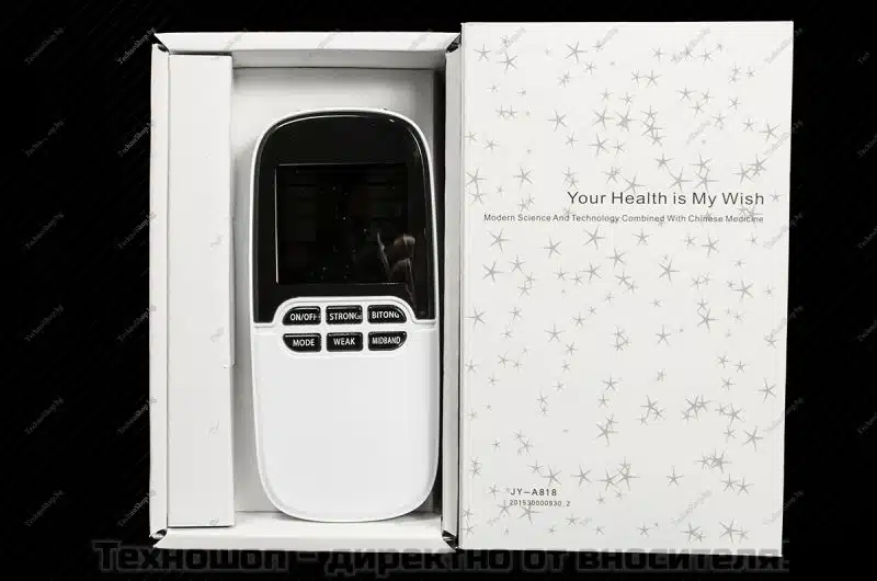 ЕЛЕКТРОИМПУЛСЕН МАСАЖОР С ЧЕТИРИ ЕЛЕКТРОИМПУЛСНИ САМОЗАЛЕПВАЩИ СЕ ЕЛЕКТРОДИ ЗА „АШИ“ ФИЗИОТЕРАПИЯ И ЕЛЕКТРО АКУПУНКТУРА.