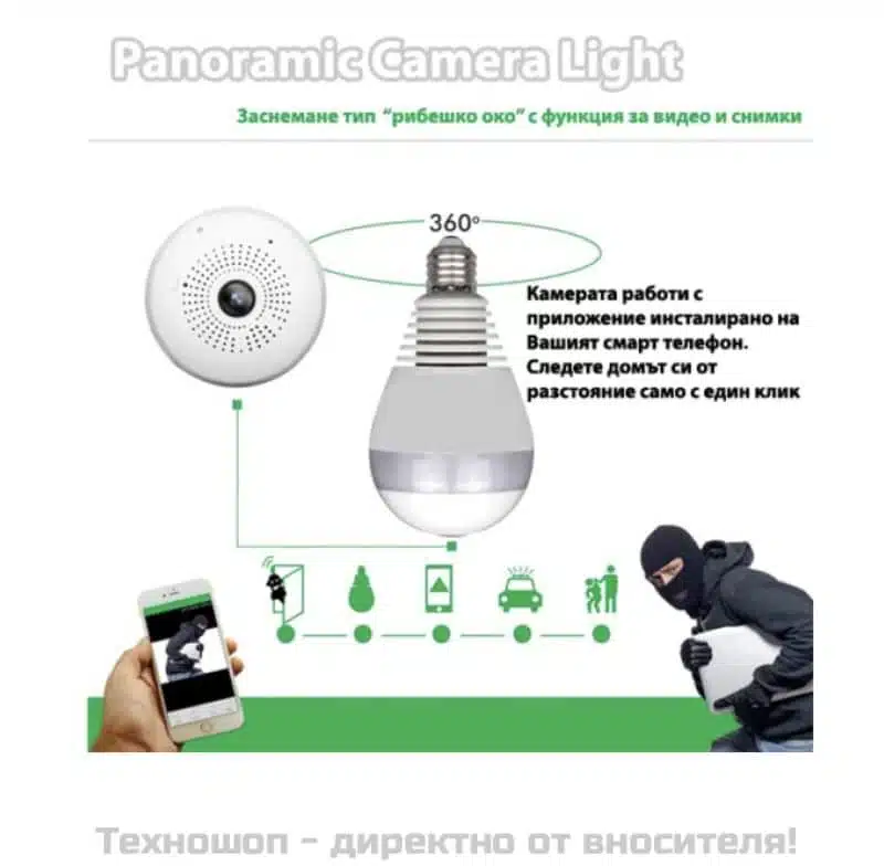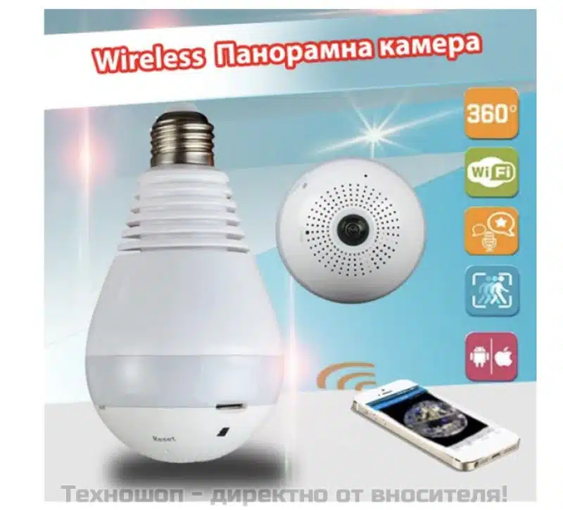 Панорамна камера – крушка с вграден микрофон и слот за SD карта памет