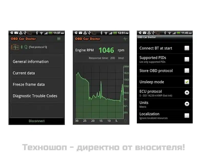 - За Android устройства: Torque, OBD Car Doctor, DashCommand, EOBD