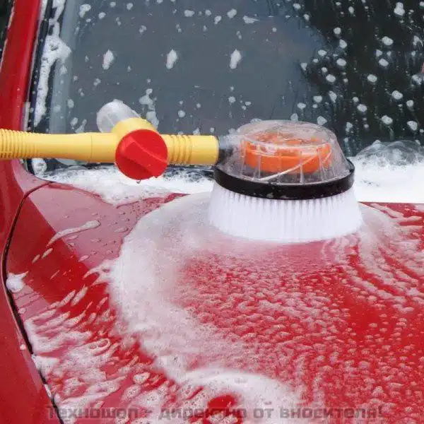 Отстрани на четката ще има контейнер, в който да сложите почистващият препарат. Четката за коли има две страни – една за почистване или миене и една за полиране до блясък. Така ще можете и да лъснете колата си и тя да изглежда като излязла от завода.