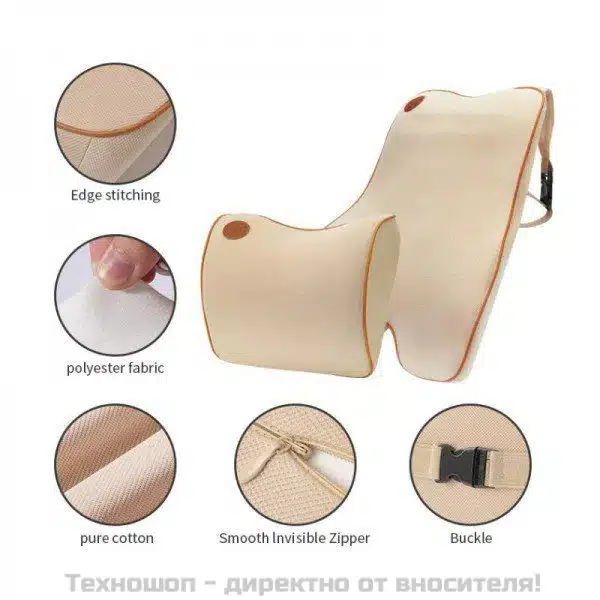 - Комплект възглавници – една за врата и една за гърба;