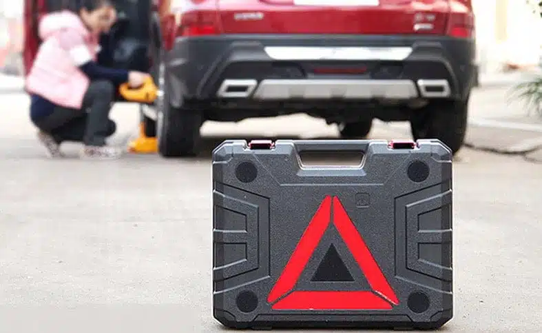 Удобен комплект 2 в 1 – електрически крик и гайковерт – задължителен за всяка спешна ситуация. Куфарът за съхранение е снабден с предупредителен триъгълник – практично решение за аварийни случаи на пътя.