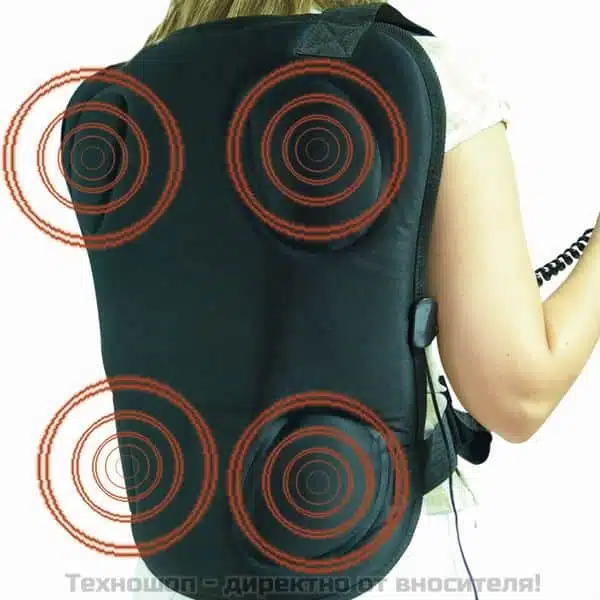 • Постави масажора на гърба си и го закрепете към тялото си с помощта на презрамките, тип раница.