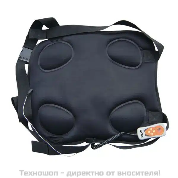 Масажорът за гръб Jocca включва дистанционна управление, което ти позволява да избираш между 8 типа масаж и 4 нива на интензивност на масажа.