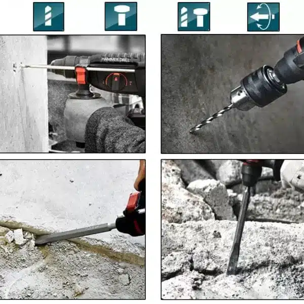 - Оптимален диапазон за пробиване в бетон с перфораторно свредло: 6 – 10 мм