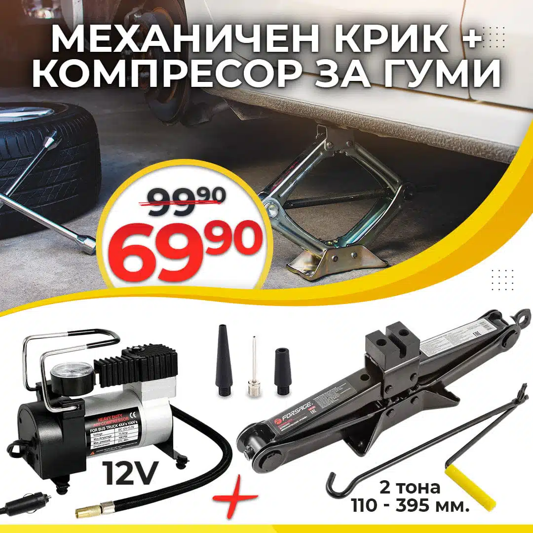 Бъдете първият написал отзив за “Немски Комплект Mеханичен Крик Тип Жаба 2 тона 110 – 395 мм и Универсален Компресор За Гуми WerkBull 12V с 3 Вида Накрайника”