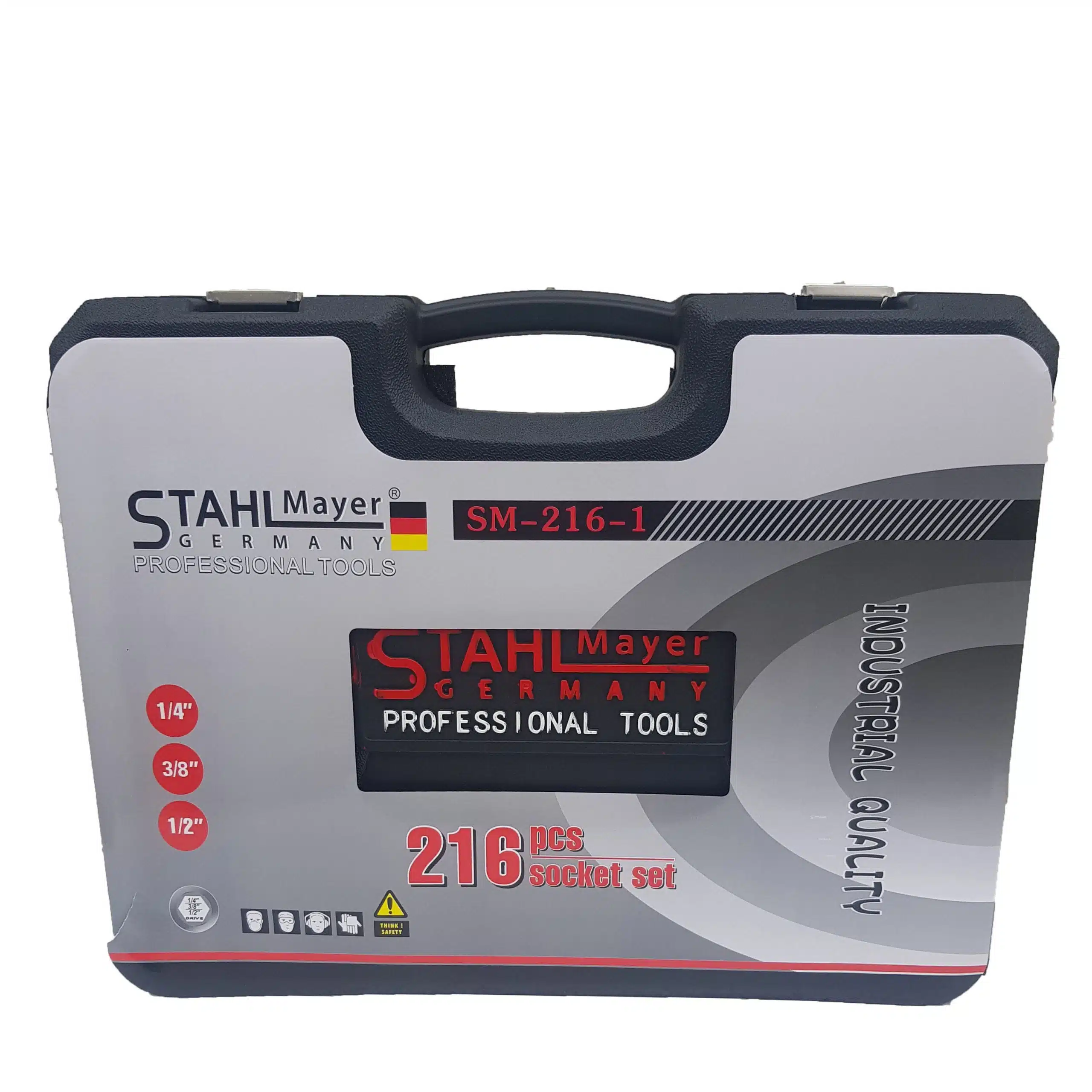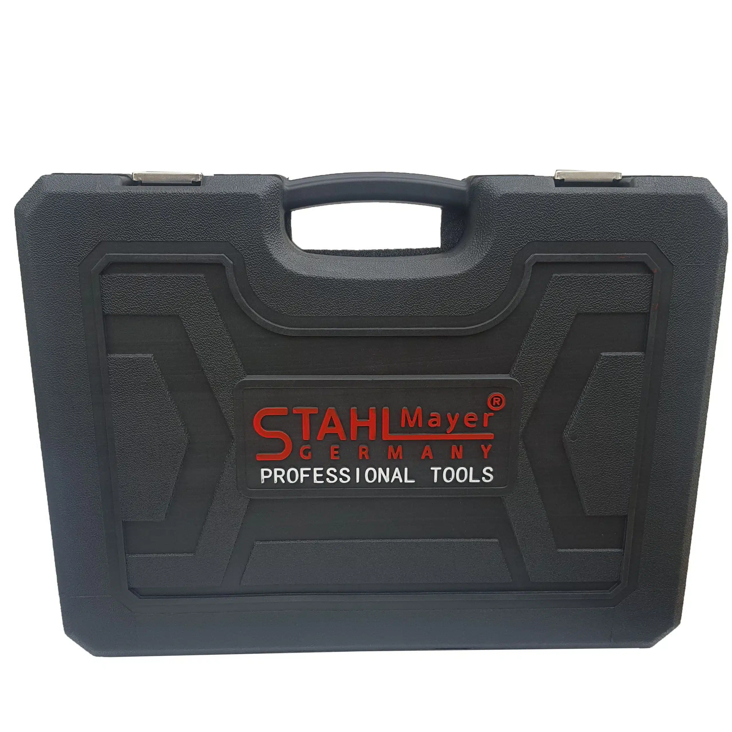 Професионален немски комплект инструменти с подсилени тресчотки, осигуряващ всичко необходимо за различни задачи. Произведени от висококачествена хром-ванадиева стомана. Комплектът идва с удобен куфар, който гарантира организирано съхранение.
