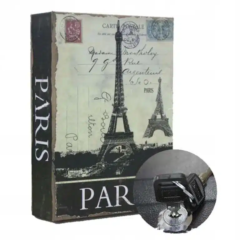 Таен сейф книга с ключ – Париж е елегантно и практично решение за скриване и защита на вашите ценности. Този стилен сейф е идеален за тези, които искат да съчетаят сигурността с уникална естетика.