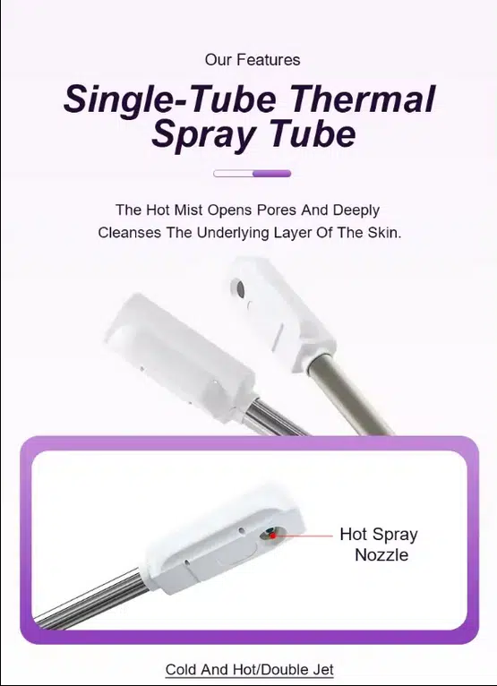 - Студен спрей: Студената пара затяга кожата, а ултрафините партикули подобряват абсорбцията. Подобрява устойчивостта на кожата към студ, като дългосрочната употреба може да осветли тена и да намали пигментацията.