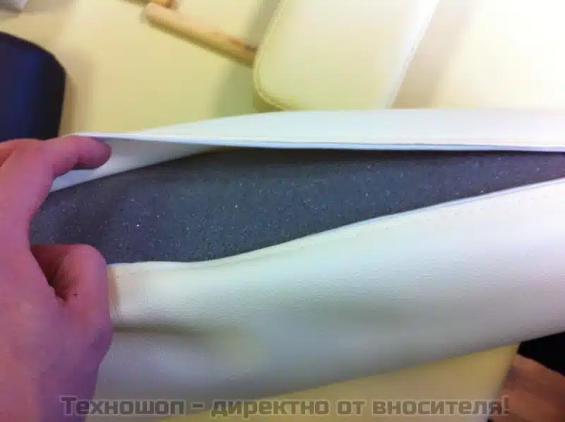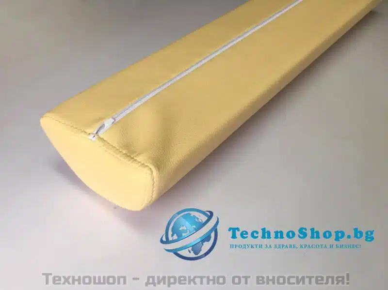 Полуцилиндричната възглавница за масажна кушетка е изработена от дунапрен или поролон – пълнежът е плътен и устойчив на деформиране.