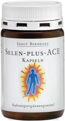 Основната функция на селена като съставка на ензима глутатион пероксидаза е да подтиска окислението на липидите (мазнините). Ние си набавяме селен чрез зърнените храни. Изследванията показват, че селенът е в недостатъчни количества в почвата, а освен това се губи и при обработката на храната. Вредното влияние на околната среда, отпадъчните газове, смогът, озонът, слънчевите лъчи, наркотичните вещества и стресът могат да доведат до образуване на агресивни субстанции. Тези субстанции се наричат „свободни радикали”. Свободните радикали могат да окажат влияние върху равновесието на реакциите при обмяната на веществата. Капсулите на Sanct Bernhard, с внимателно съгласуваният състав на Селен плюс витамини А, С и Е, предлагат уникална възможност за стимулиране на функционалната годност на клетките до дълбока старост.