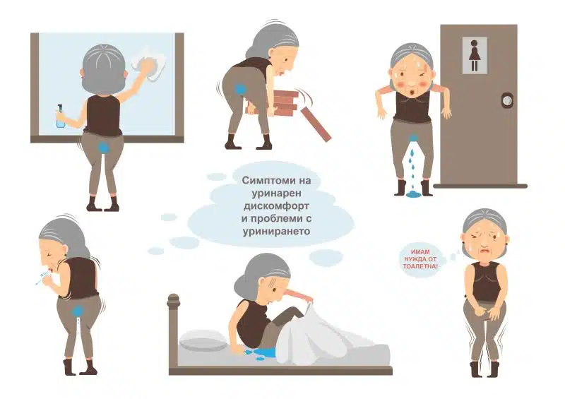 - Различни видове уринарна инконтиненция;